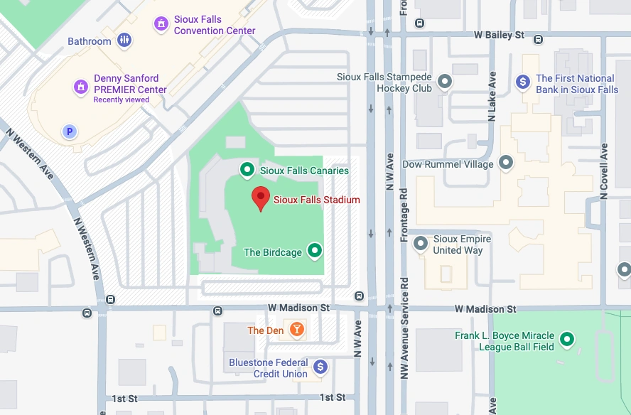 Parking and walking to the Sioux Falls Stadium entrance will take a little time, so please allow additional time and plan accordingly. Sioux Falls traffic can be busier around Sioux Falls Stadium during popular events.